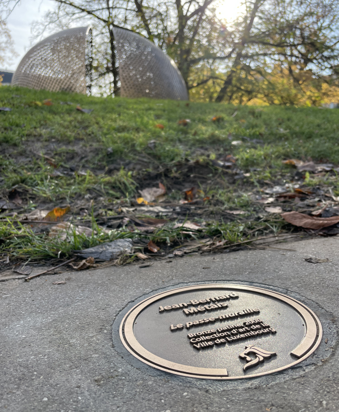 We have designed a new signage system to label the public space Art collection of the City of Luxembourg. The new system is based on a circular bronze cast that is mounted flush into the ground. The circular format allows for a much more flexible and non-aligned positioning in space, to fine-tune and orientate the information within pavings and to respond to often complex spatial environments. We wanted the signs to be visible enough for the urban stroller while not being too visible in the urban space. The Art collection being from different periods over the last 80 years our aim was also to make it look and feel like it has always been there, reflected in this traditional technique often used in public Art.