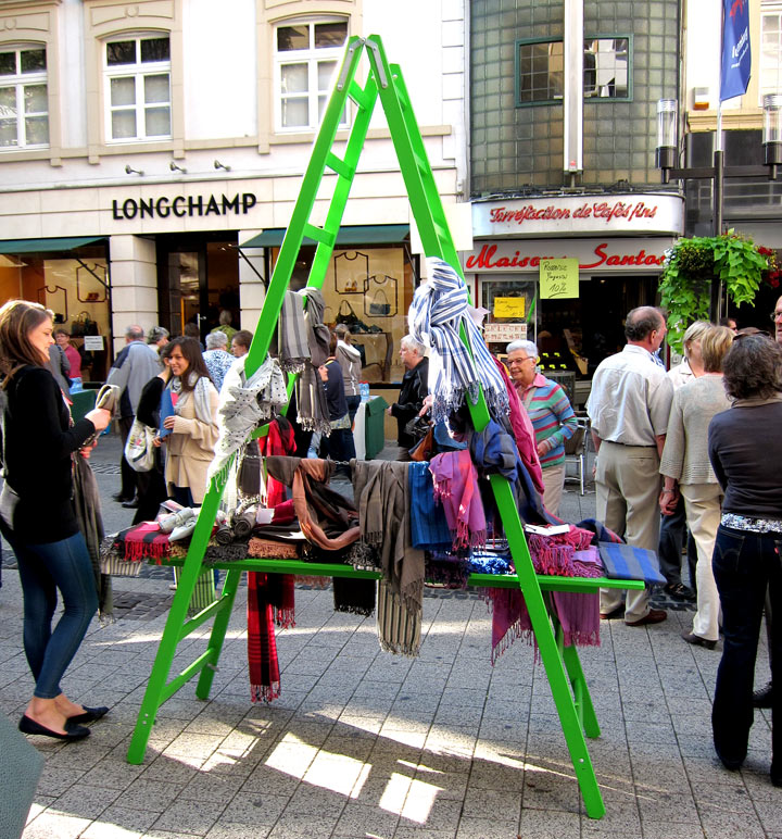 Creating a street stall for a one day event to sell hand made scarves from Bangladesh is not my usual design brief, especially if the budget had to be kept at an absolute minimum. But there is always a way, even if it means going to the DIY shop..