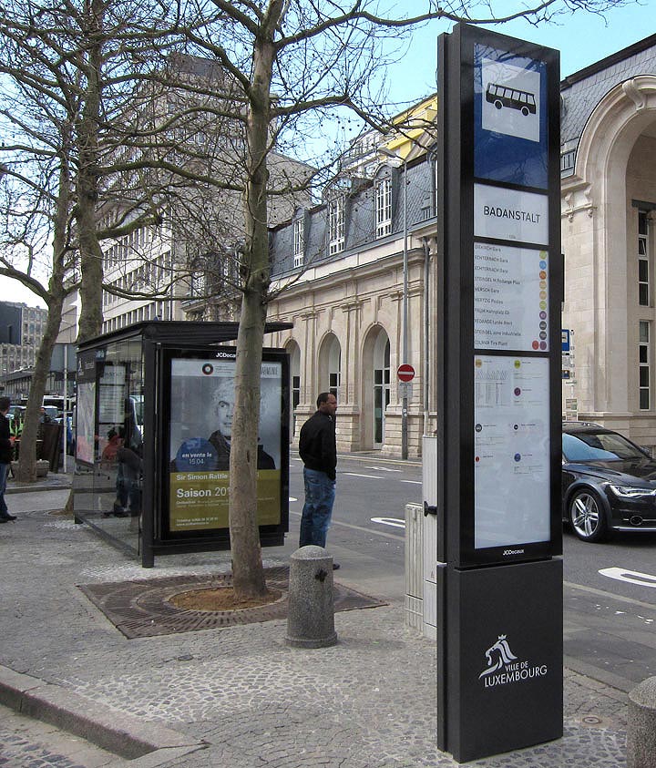 After developing a comprehensive urban signage and wayfinding concept for the Kirchberg area in Luxembourg-city, the scheme has now been implemented at all strategic locations & tram stations across the area.