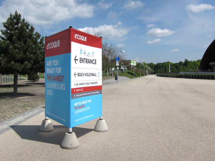 Just finished a signage & wayfinding project for the Olympic Games of the Small Nations of Europe, held in Luxembourg this year. Very refreshing to work on a fast and short term project for a change. In collaboration with Luxembourg based Designbureau. Client: Comité Olympique et Sportif Luxembourgeois