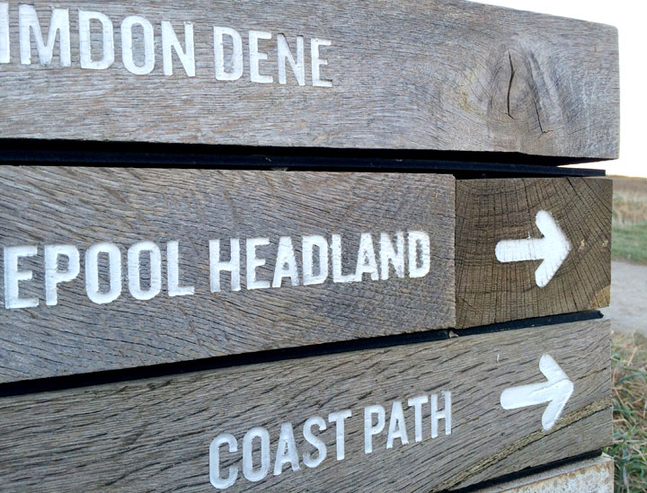 Very robust and beautifully simple coastal path signage between Hartlepool Headland and Crimdon Dene, North East England